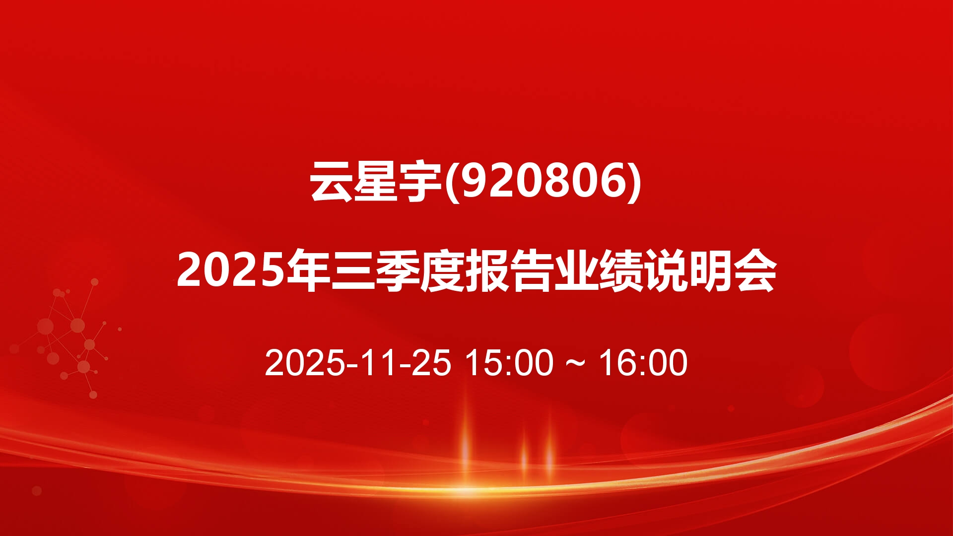 云星宇2025年三季度报告业绩说明会